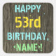 Sticker Carré Faux Wood, Peint Texte Look, 53ème anniversaire +