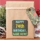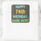 Ce design amusant d'autocollant sur le thème de l'anniversaire comporte un message comme "HAPPY 74th BIRTHDAY, NAME-HERE !", où le nom peut être personnalisé. L'arrière - plan présente un motif rustique, brun, imitation bois de grain. Le texte du message personnalisable est composé de couleurs comme le bleu, le jaune et le vert, et il a un aspect inspiré de celui du lettrage peint et recouvert de pochoirs. Des autocollants comme ceux-ci pourraient peut-être être offerts en cadeau, ou être utilisés comme décorations lors d'une fête d'anniversaire organisée pour quelqu'un qui célèbre son soixante-quatorzième anniversaire. [~Z0000296]