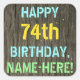 Sticker Carré Faux Wood, Peint Texte Look, 74e anniversaire + No