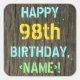 Sticker Carré Faux Wood, Peint Texte Look, 98e anniversaire + No