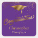 Sticker Carré Félicitations Diplômé, Classe d'or sur violet
