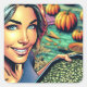Sticker Carré Femme avec plateau de graines Citrouilles Hallowee