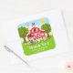 Sticker Carré Ferme Rouge Anniversaire Brun Cheveux Garçon Merci