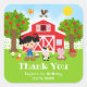 Cet autocollant mignon et amusant présente une fille aux cheveux noirs avec une peau claire à côté d'une grange rouge avec une girouette coq. Il y a des animaux de ferme adorables tels qu'une vache, un cochon et une poule. En arrière-plan, on voit un ciel bleu vif, des pommiers, du soleil, des papillons et des marguerites. Le texte combine des polices grasses et sans empattement pour un look stylé et moderne. C'est parfait pour une fête d'anniversaire sur le thème de la ferme.