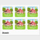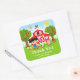 Sticker Carré Ferme Rouge Anniversaire Fille Cheveux Noirs Merci