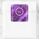 Sticker Carré Festif Violet Foil Snowflakes Nom du monogramme