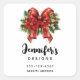 Autocollants d'affaires avec un arc de Noël festif en rouge et or. Entourée de fleurs de poinsettia, de décorations de pin et de Noël.