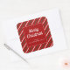 Stripes Rouge et Vert Festive Joyeux Sticker Carré de Noël.