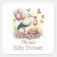 Sticker Carré Fête de naissance de bébé fille au bec rose