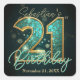 Sticker Carré Fête des 21 ans Mosaïque d'agate Or Bleu sarcelle