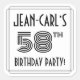 Cet élégant autocollant carré de fête/célébration de cinquante-huitième anniversaire comporte un nom modifiable, un style art déco fantaisie inspiré du numéro "58e", le message "FÊTE D'ANNIVERSAIRE !", et une frontière multiligne. Des autocollants élégants sur le thème de l’anniversaire comme ceux-ci peuvent être distribués ou utilisés à une fête d’anniversaire célébrant le 58e anniversaire de quelqu’un, ou peut-être utilisés pour préparer des cadeaux ou des invitations à un tel événement. [~Z0000618]