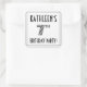 Ce modèle d'autocollant carré de fête/fête des Roaring Twenties a été inspiré par un nom modifiable, un style art déco fantaisiste inspiré du numéro "7th", le message "BANTHDAY PARTY!", et un motif frontalier composé de lignes. Des autocollants comme ceux-ci peuvent être utilisés ou distribués à une fête organisée pour quelqu'un qui célèbre son septième anniversaire, ou peut-être utilisés pour préparer des cadeaux ou des invitations à un tel événement. [~Z0000618]
