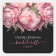 Sticker Carré Fêtes de Bachelorette Noire aux Pivoines Roses