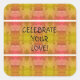 Célébrez votre amour! est un sentiment inspirant avec un arrière - plan abstrait! Coeurs douces, vignes et prunes de sucre se retrouvent dans ce design artisanal au milieu d'un motif de motifs roses et jaunes ! Il y a aussi deux rayures blanches à l'avant !