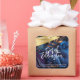 Le riche motif bleu de feuilles plante est complété par des éléments dorés.
