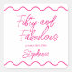 Fifty and Fabulous Pink Script square stickers. A modern 50th birthday invitation that you can personalize and send out for your fiftieth birthday party celebration. The words "Fifty and Fabulous" are set using trending font typography. The elegant text colors can be changed using the edit menu.