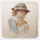 Illustration vintage adorable sur les cadeaux et les vêtements d'une jeune fille portant un casquette avec des fleurs de marguerite et berçant une armure de canards avec son tablier.