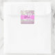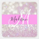 La parties scintillant de bokeh pastel lilas chimmer scintille le nom monogramme et l'autocollant carré initial. Votre nom personnalisé et votre monogramme sont écrits dans un élégant script écrit à la main avec un arrière - plan rose. Un cadeau d'anniversaire ou de Noël parfait !