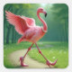 Sticker Carré Flamant rose à talons et perles hauts