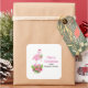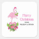 Stickers avec flamant de Noël à thème tropical portant un chapeau de santa rose. Sous ses pieds se trouve un bouquet de sucre de canne avec de jolies fleurs tropicales et des baies roses. Un bourgeon de saint sur sa poitrine.