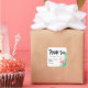 Carré merci sticker pour un mariage d'été avec une aquarelle flamingo et feuilles de palme. Personnalisez avec vos noms et date mariage !