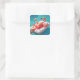 Sticker Carré Flamingo Relaxing On a Pool Mattress