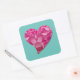 Sticker Carré Fleur d'Hydrangée rose Coeur dansant sur bleu Turq
