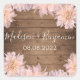 Sticker Carré Fleur rose Dahlia Mariage en bois rustique Date