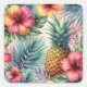 "Tropical Bloom" Un motif tropical vivant et coloré, aux ananas mûrs niché au milieu de luxuriants feuilles de palmiers turquoises et aux fleurs d'hibiscus vibrantes, dans les tons rouge, rose et orange. Ce design saisit l'essence d'un paradis tropical, mêlant une flore exotique à une ambiance fraîche et estivale.