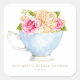 Ajoutez une touche charmante et rétro à vos cadeaux de remerciement, invitations ou décorations de votre fête de mariage avec cet autocollant personnalisé représentant un délicat bouquet de roses à l'aquarelle dans une tasse à thé classique. Cet autocollant floral pour fête de mariage est parfait pour les thèmes de thé dansant, les rassemblements dans le jardin ou toute célébration romantique. Cet autocollant personnalisable pour fête de mariage est le moyen idéal pour personnaliser votre événement et rassembler votre thème. Utilisez-les comme étiquettes de cadeaux, sceaux d'enveloppe ou simplement comme une douce touche décorative.