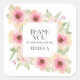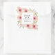 Sticker Carré Fleurs aquarelles rose tendre Merci