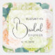 Personnalisez ces autocollants de 3" pour la fête de mariage avec de belles hortensias blancs et verts à l'aquarelle, des roses roses et crème, des marguerites, de petites fleurs et des feuilles sur fond rose blush avec vos détails en lettrage chic. Articles CORRESPONDANTS dans notre collection.