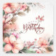 Sticker Carré Fleurs de magnolia roses et oiseaux Joyeux Anniver