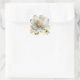 Romantique fleurs blanches dorées et papillon merci autocollant carré avec nom personnalisable et texte pour des cadeaux élégants et chics!
