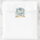 Romantique bleu doré fleurs et papillon merci autocollant carré avec nom personnalisable et texte pour des cadeaux élégants et chic!