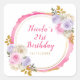 Beau autocollant de fête d'anniversaire avec un cadre en faux parties scintillant rose, violet et or brillant avec des arrangements floraux. Parfait pour une fête d'anniversaire. Les mots peuvent être changés en fonction de vos propres détails ou exigences