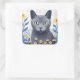 Sticker Carré Fleurs Jaunes Chat Bleu Russe