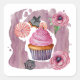 Sticker Carré Fleurs Roses avec Gâteau Halloween