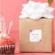 Sticker Carré Fleurs Roses Écriture Manuscrite Modèle Merci