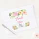 Sticker Carré Fleurs roses et jaunes Merci pour la Baby Shower