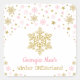 Beau autocollant de premier anniversaire/baby shower sur le thème de l'hiver avec des flocons de neige rose et or, des étoiles de parties scintillant et des arroses de confettis