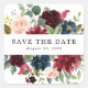 Élégante florale enregistrez les autocollants de date avec votre date mariage encadrée de fleurs d'aquarelle bleu marine, bordeaux et bleu marine peintes, complétées par un feuillage vert luxuriant. Utilisez l'élégant enregistrer les étiquettes de date comme scellés d'enveloppe ou faveurs. Conçu pour coordonner avec notre collection de mariages floraux enchantés.