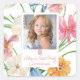 Célébrez la première sainte communion de votre enfant avec ce charmant et vibrant Sticker. Le design présente un étonnant arrière - plan floral d'aquarelle dans les tons rose, crème et vert, symbolisant la croissance et le renouveau. Un cadre photo centré apporte une touche personnelle, tandis que la croix rose souligne la signification sacrée de l'événement. Le texte est présenté avec élégance dans un mélange de polices de script et de serif, assurant à la fois beauté et lisibilité. Parfait pour marquer cette joyeuse étape spirituelle dans le style. B010
