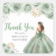 This quinceanera sticker features a beautiful princess in a sage green ball gown with floral arrangements. This is perfect for a quinceanera birthday party.