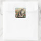 Sticker Carré Fluffy Gray Tabby Cat and Folk Art Flowers