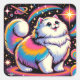 Un adorable chat blanc et moelleux dans l'espace dans un style rétro IA généré art