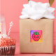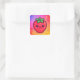 Sticker Carré Fraise Kawaii souriante sur Pastel Gradient Backg