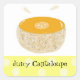 Une moitié juteuse de cantaloupe prête à manger. Une bordure jaune avec des pois blancs.