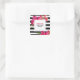 Sticker Carré Fuchsia Flore noir rayures Mariage Merci