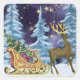 Sticker Carré Full Moon over Reindeer With Sleigh